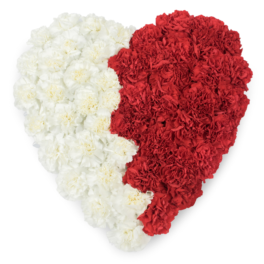 This heart-shaped arrangement, designed by the expert team at Handy Flowers, is a celebration of love and elegance. Featuring an exquisite mix of white and red carnations, each flower is hand-selected for its undeniable beauty and lasting freshness. The bouquet’s vibrant colors and unique design create a luxurious display that is perfect for expressing heartfelt emotions on any occasion.